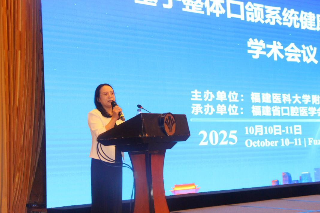 随后,福建医科大学附属口腔医院院长黄晓晶教授发表致辞,她对各位专家及同仁的到来表示热烈欢迎,并预祝大会圆满成功。黄院长强调,整体口颌系统健康矫治理念是口腔正畸领域的重要发展方向,希望与会人员能够充分利用此次机会,深入交流、共同进步。她表示,口颌系统健康矫治已进入“精准化、个性化、数字化”的新阶段。从儿童早期矫治预防性干预,到成人复杂病例的多学科联合治疗,技术创新正深刻改变着临床实践。作为福建省口腔正畸医学水平标杆,我院始终以开放姿态拥抱国际前沿,着力优化医疗服务,成立儿童早期矫治规范化诊疗中心,推动诊疗服务质量提升。