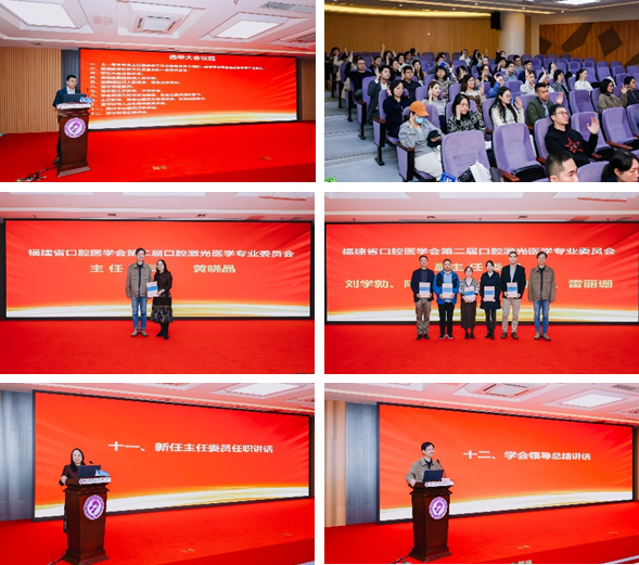 活动期间,同步举行了福建省口腔医学会口腔激光医学专业委员会换届大会。会议严格遵循民主、公正原则完成换届选举,产生新一届专委会委员58名、青年委员3名。福建医科大学附属口腔医院黄晓晶教授当选主任委员,施汉平主任医师(福建医科大学附属协和医院)、黄祖芳教授(福建师范大学)、刘学勍主任医师(厦门医学院附属口腔医院)、雷丽珊副教授(福建医科大学附属口腔医院)、陈鹏副主任医师(福建医科大学附属第一医院)当选副主任委员。学会副会长施斌教授对第一届专委会的工作给予高度肯定,并寄语新一届专委会加强国内外学术交流,深耕激光技术临床应用,为福建省口腔医学高质量发展贡献力量。